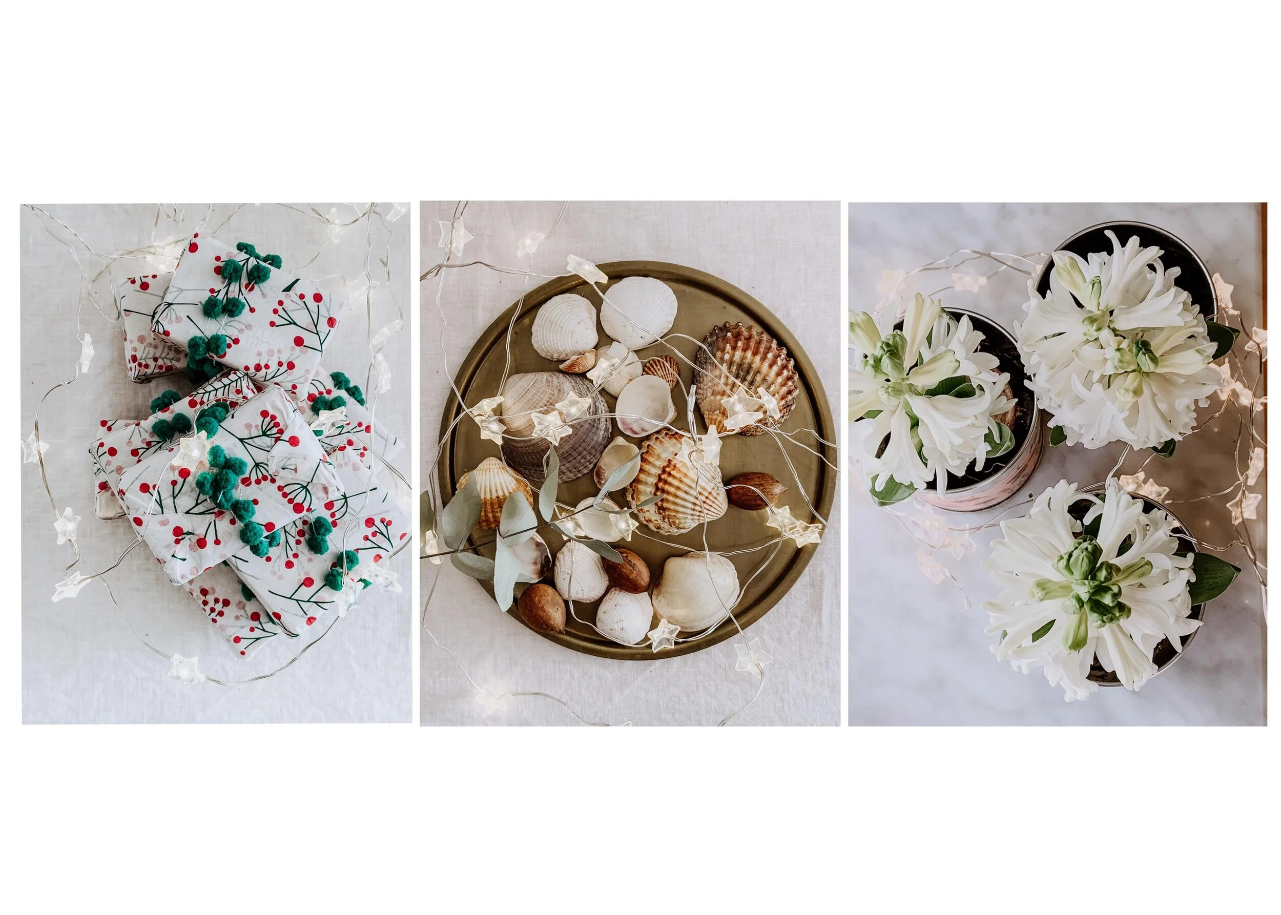Flowers are my favourite. As soon as I see the first hyacinth bulbs in flower shops (or in Ikea), I just have to buy a few ones. To see them grow and then blooming and spreading wonderful scent around, I definitely feel that Xmas is around. Amaryllis is the other flower that brings the authentic feel. A simple bouquet of tulips in red or white is perfect for Christmas. I’m not sure if tulips are popular Xmas flowers only in Scandinavia, hmm.